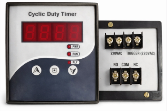The Digital Cyclic Duty Timer is a microcontroller-based panel-mounted timer designed for automatic ON–OFF cyclic control of electrical loads. It allows independent setting of ON time and OFF time, making it ideal for applications requiring repetitive and continuous operation cycles. The bright LED display ensures clear visibility, while user-friendly keys enable easy parameter setting. This timer is widely used in industrial automation, material handling systems, lubrication systems, cooling fans, conveyors, and electromagnetic applications.