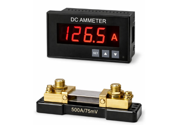Digital DC Ammeter with Shunt is a panel-mounted electronic instrument designed for accurate measurement and continuous monitoring of DC current in industrial electrical systems. The ammeter works in conjunction with an external precision shunt, which converts high DC current into a low millivolt signal that is safely measured by the digital meter.